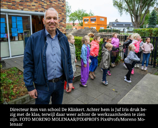 Zoals u weet is De Klinkert uit haar jas gegroeid en is de bovenbouw van onze school al langere tijd gehuisvest in de Vossenberg. Met de gemeente zijn we intensief in gesprek over het realiseren van uitbreiding van ons huidige schoolgebouw. Helaas heeft dit proces in de achterliggende periode veel vertraging opgelopen als gevolg van o.a. personele wisselingen, corona, vleermuizen, bezwaren van omwonenden.