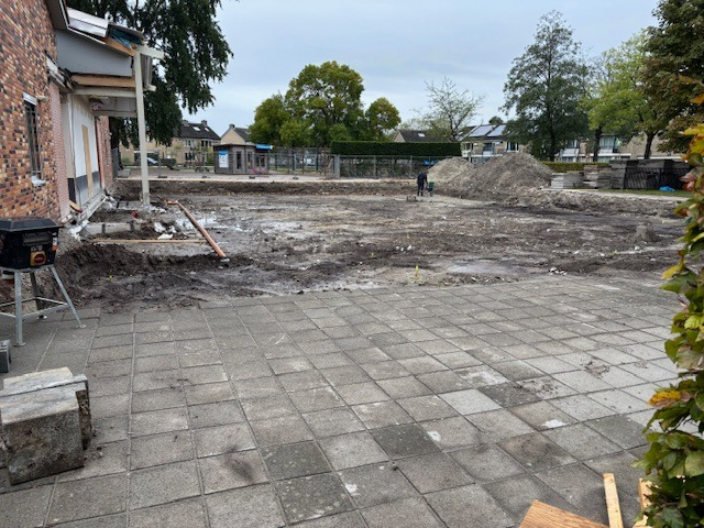 We starten met het inrichten van het bouwterrein/bouwplaats en verwijderen van het schoolplein meubilair en verharding waar benodigd. Daarna gaan we de delen van de school eraf slopen waar de nieuwbouwen moet komen te staan. Vervolgens worden de fundaties ontgraven en worden de fundatiepalen geboord, daarop worden de betonnen fundatiebalken gemaakt waarop de geïsoleerde betonnen begane grond vloeren worden gelegd.